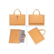 Aubyhe 15.6 İnç Pu Dikişli Bilgisayar Çantası - Hafif, Dayanıklı, 3 Cep Tasarımı, Açık Kahverengi, Dış Çanta İç Çanta Kahverengi