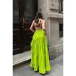 Audrey Fıfrlı Yırtmaç Detay Etek 4037 Fistik Yeşi Li
