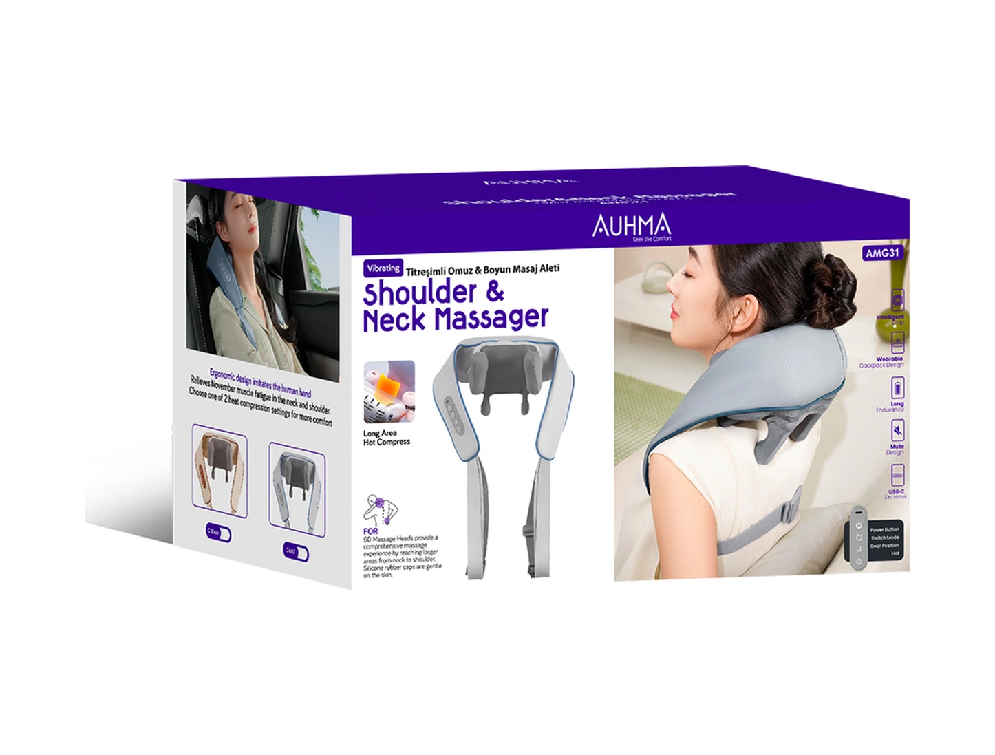 Auhma Amg31 Titreşimli Omuz Ve Boyun Masaj Aleti Isıtmalı 5d Masaj Başlığı Sessiz Güçlü Motor Gri