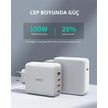 Aukey Pa-b7s-wh 100w Dört Bağlantı Noktalı Pd Gan Duvar Şarj Cihazı