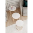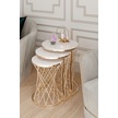 Aurelia Serisi Gold Metal Örgü Desenli 3 Lü Zigon Sehpa Krem Membran Tabla Altın - Krem