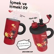 Aurora Nezha Sevimli Termos Bardağısu Bardağı Büyük Kapasiteli Öğrenci Kırmızı
