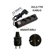 Avarson 3'lü Üçlü Priz Topraklı Anahtarlı Kablolu Siyah 3x1,5 Ttr 12 On İki Metre