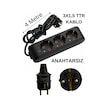 Avarson 3'lü Üçlü Priz Topraklı Kablolu Siyah 3x1,5 Ttr 4 Dört Metre