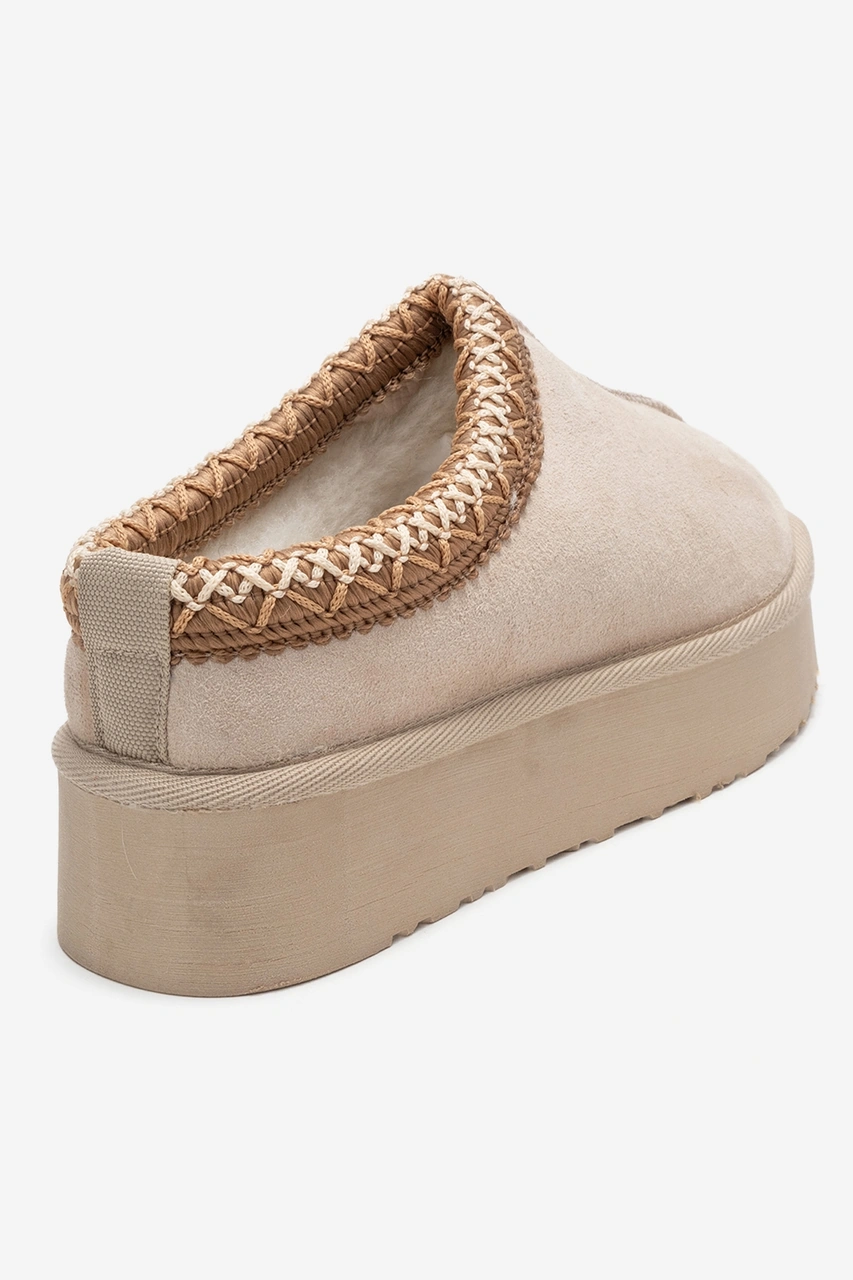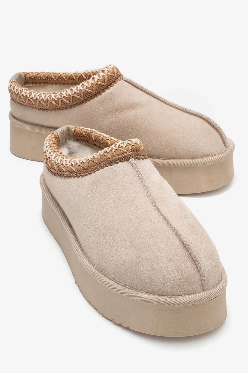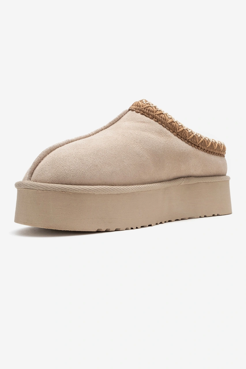 Avelıa Bej Süet Hakiki Deri Dikişli Kadın Kalın Tabanlı Kışlık Terlik Bej