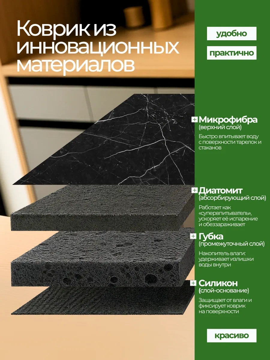 Av&home Nano Bulaşık Kurutma Matı 415216168 Siyah Mermer