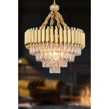 Avizemoda Palmira 55'Lik Prizma Kesim Kristal Taşlı Lüks Avize - (Sarı-Yaldız)