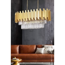Avizemoda Sima 75X30 Cm'Lik Kristal Cam Taşlı Lüks Yemek Masası Üstü Avize - (Sarı Yaldız)