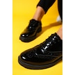 Avra Siyah Rugan Hakiki Deri Kadın Oxford Ayakkabı Siyah