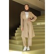Tesettür İkili Takım Uzun Tunik Bol Paça Pantolon 4006-bej Bej