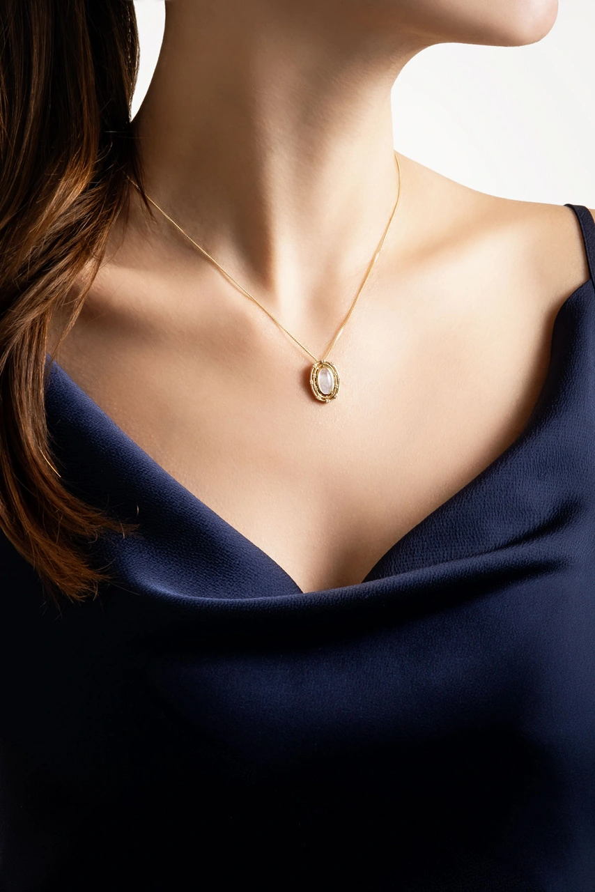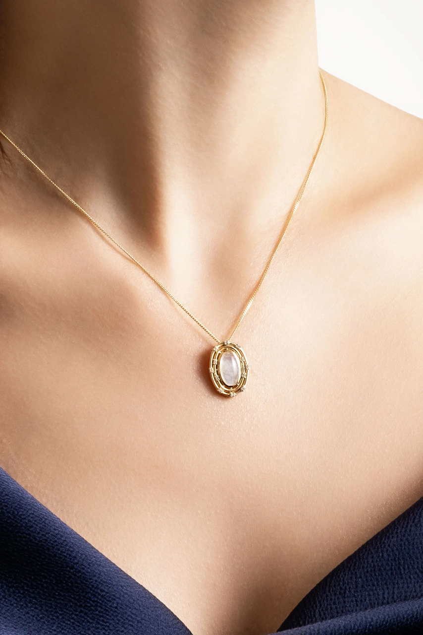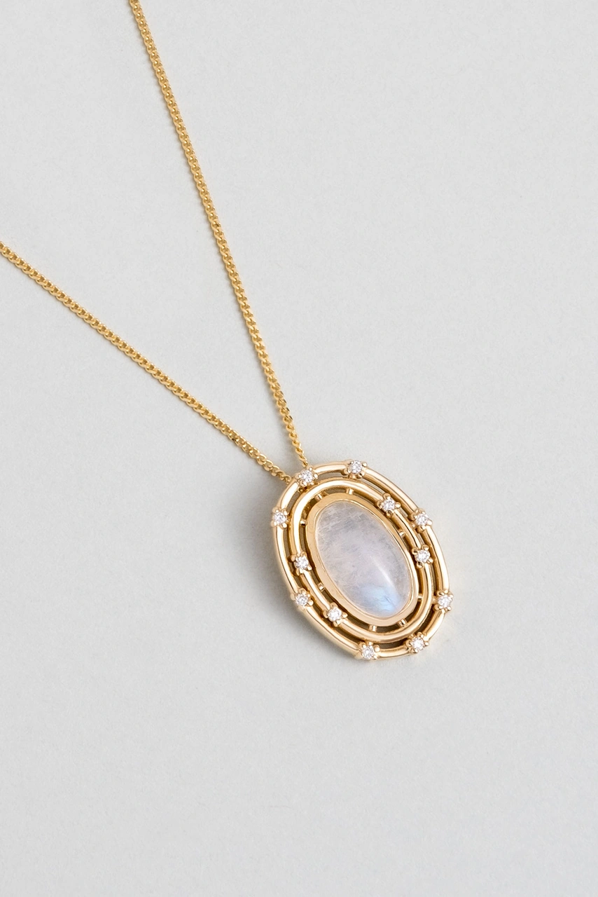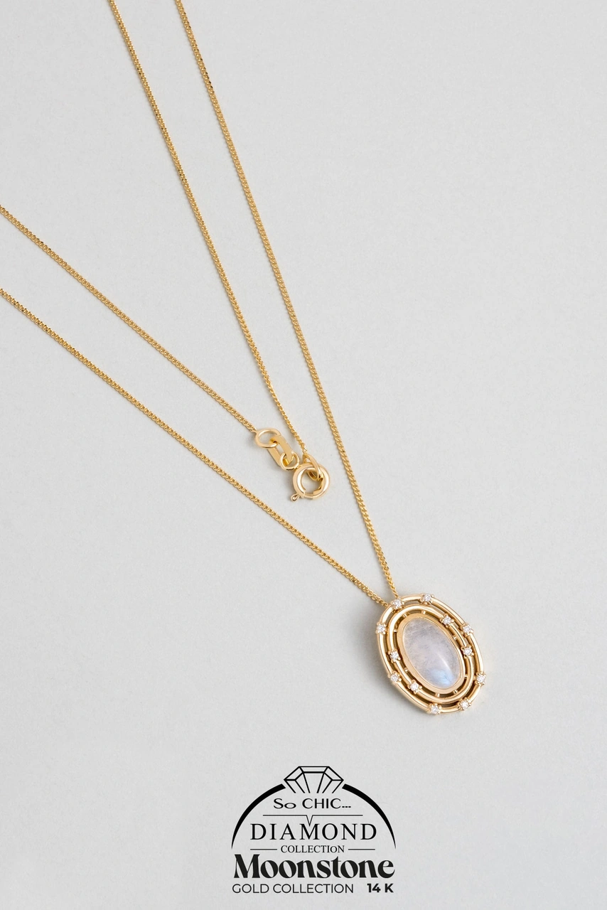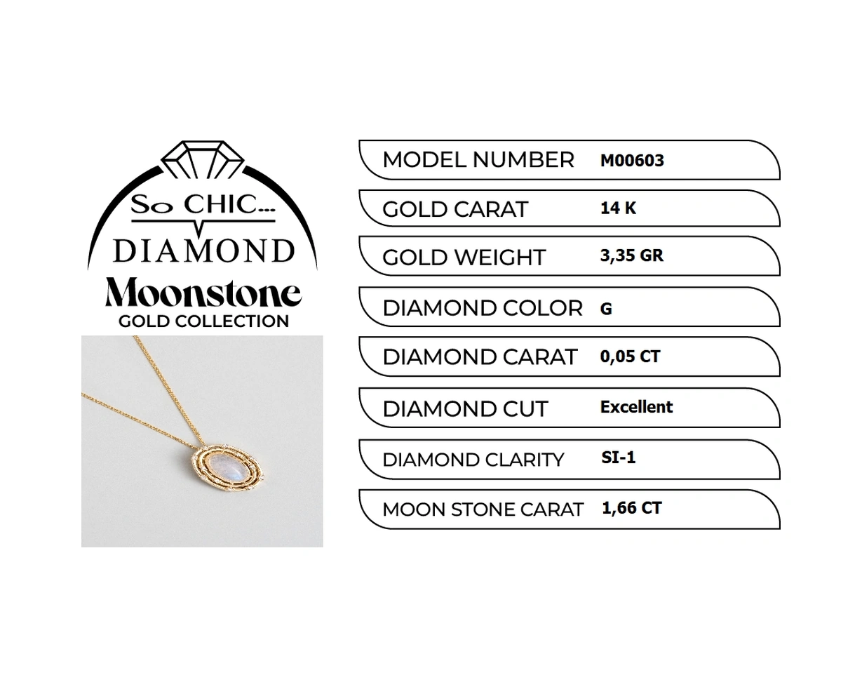 Ay Taşlı 14 Ayar Sarı Altın Pırlanta Kolye