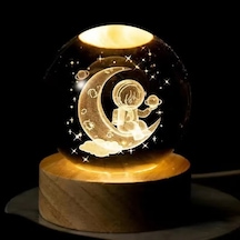 Ay Üstünde Astronot Tasarımlı Ahşap Altlıklı Işıklı Cam Küre 6cm