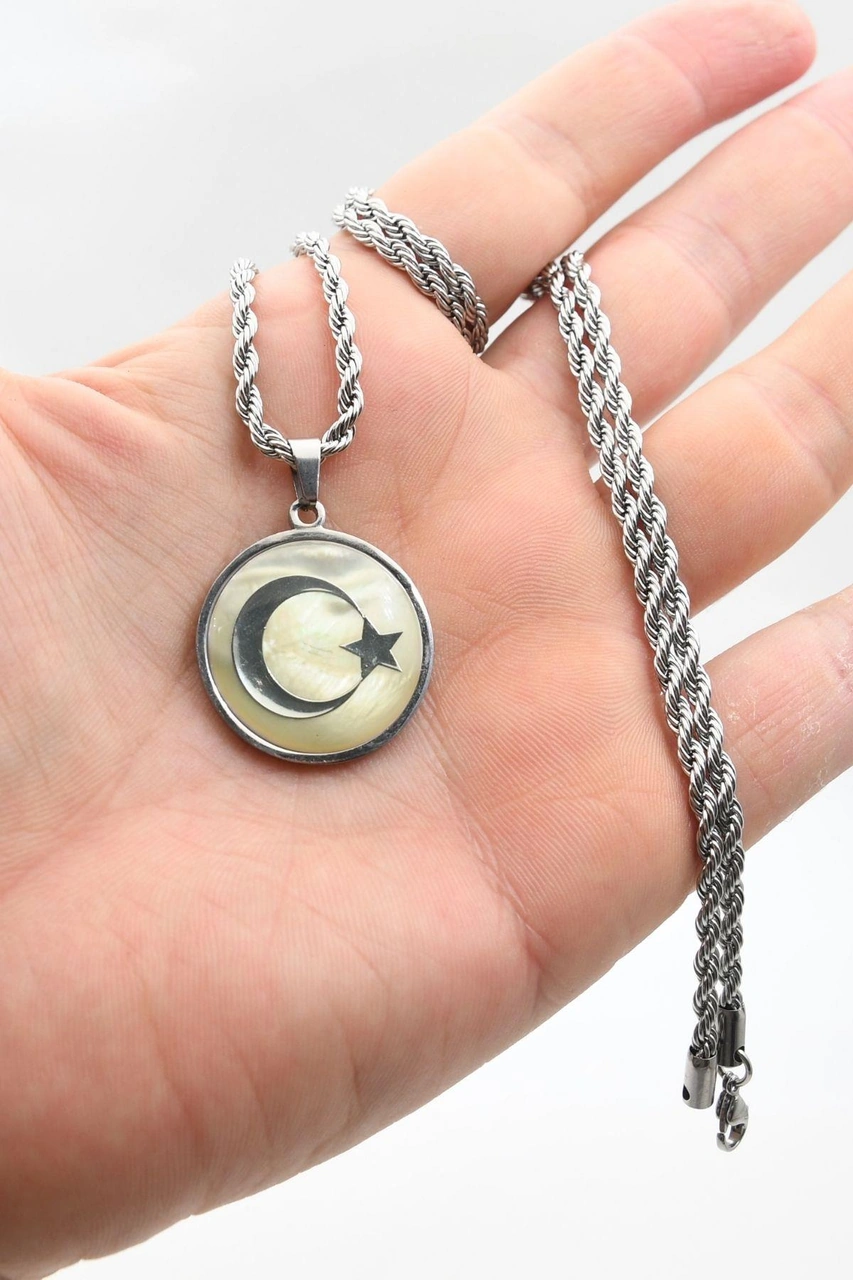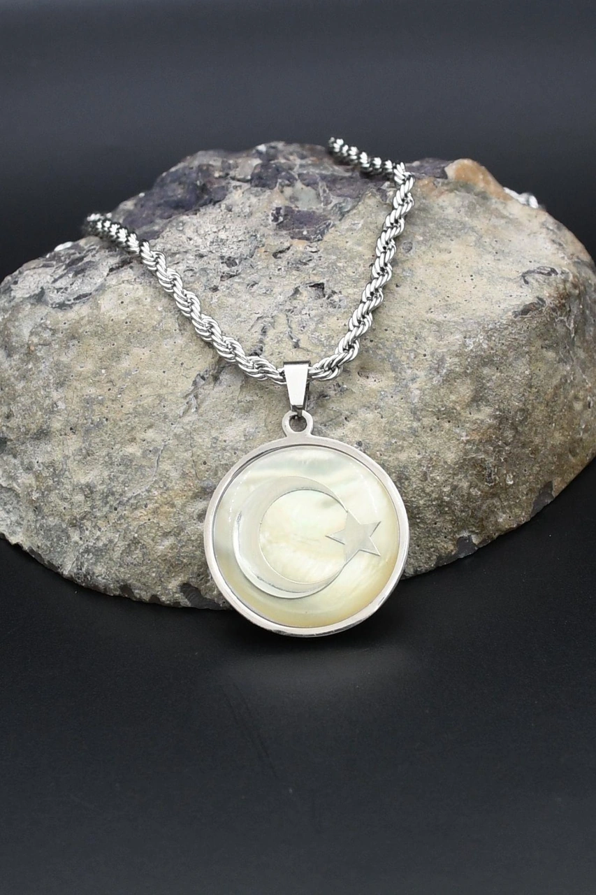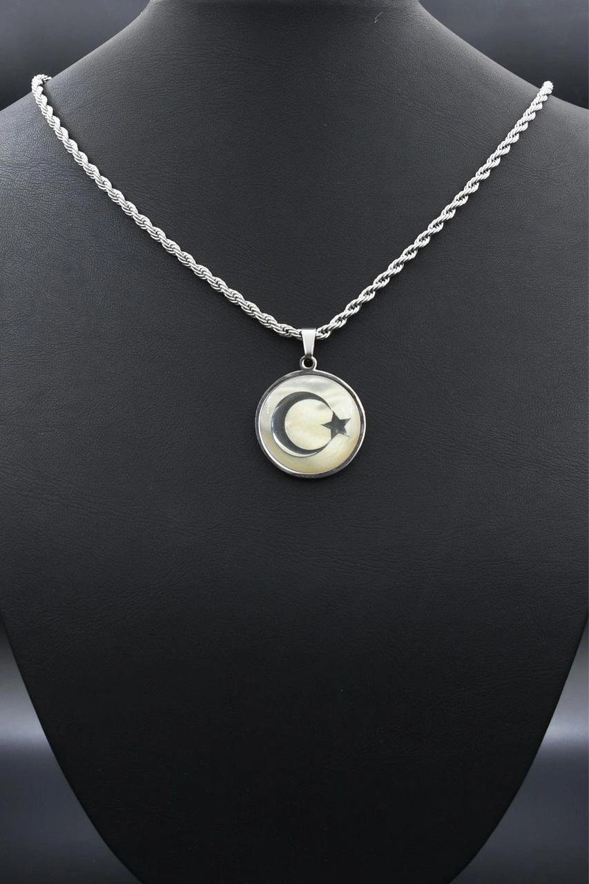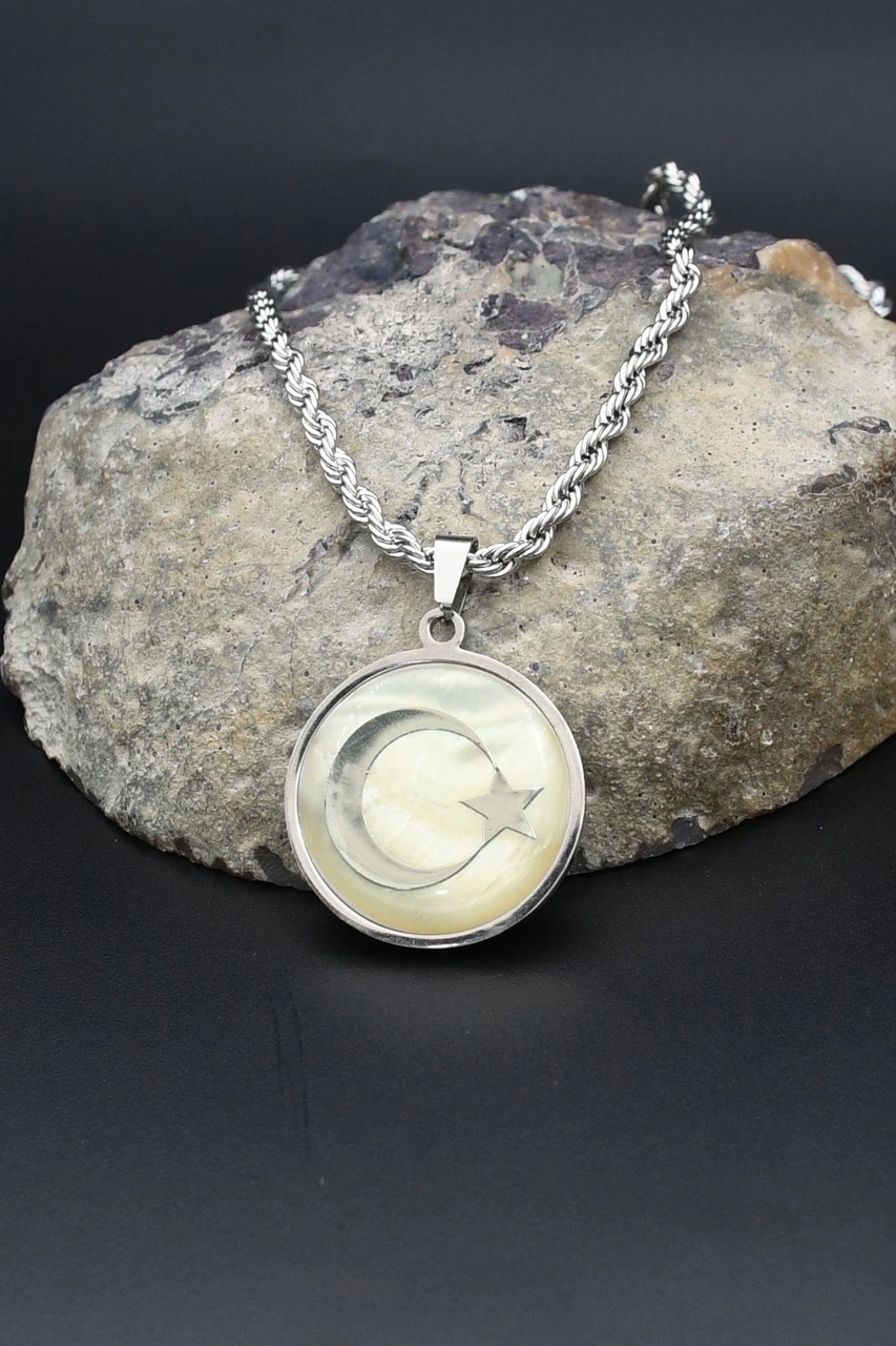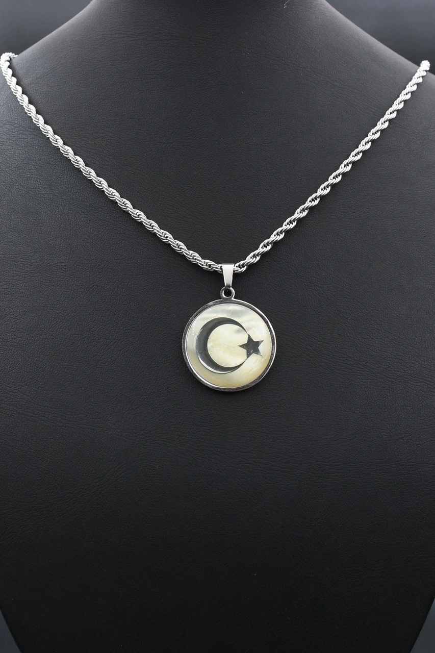 Ay Yıldızlı - Ay Yıldız Kolye Paslanmaz Çelik Zincir 3mm 902303 Gümüş