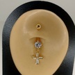 Aya Tasarım Gold Renk Taşlı Haç Figürlü Göbek Piercing