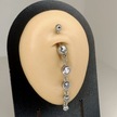 Aya Tasarım Gümüş Renk Beş Taşlı Model Göbek Piercing Gümüş
