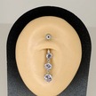Aya Tasarım Gümüş Renk Üç Taşlı Göbek Piercing