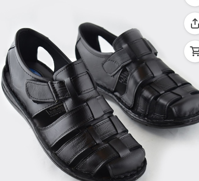 Ayakkabiburada 033 Topuk Jelli Hakiki Deri Erkek Sandalet Ayakkabı Siyah