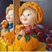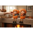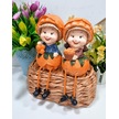 Ayakları Sallanan Portakal Kızlar Figürlü 2'li Biblo Seti Dekoratif Obje Hediyelik 24 Cm. Büyük Boy