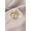 Ayarlamalı Gold Renk Metal Zirkon Ve Kristal Taşlı Dikdörtgen Model Yüzük Bakır
