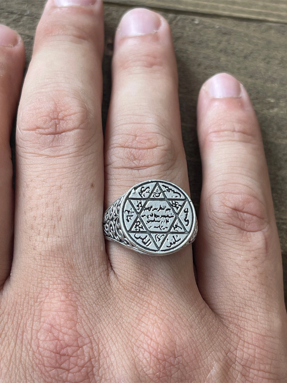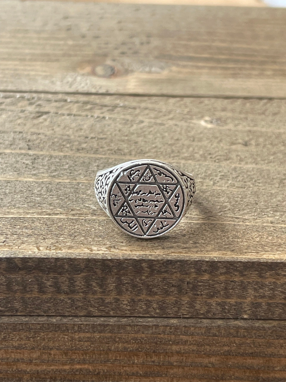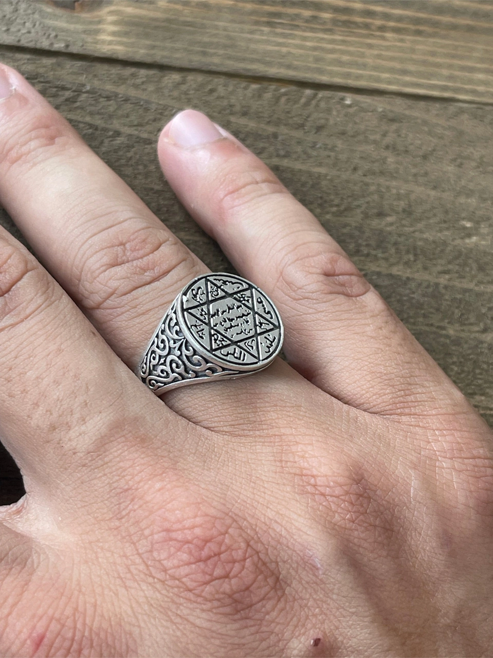 Ayarlanabilir Ölçü 925 Ayar Gümüş Kaplama Hz Süleyman Mührü Tasarım Yüzük Gümüş