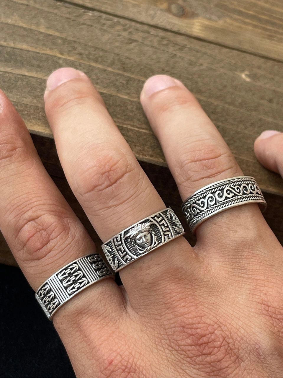 Ayarlanabilir Ölçü 925 Ayar Gümüş Kaplama Klasik Desen İşçilikli 3lü Tasarım Yüzük Metalik Gri
