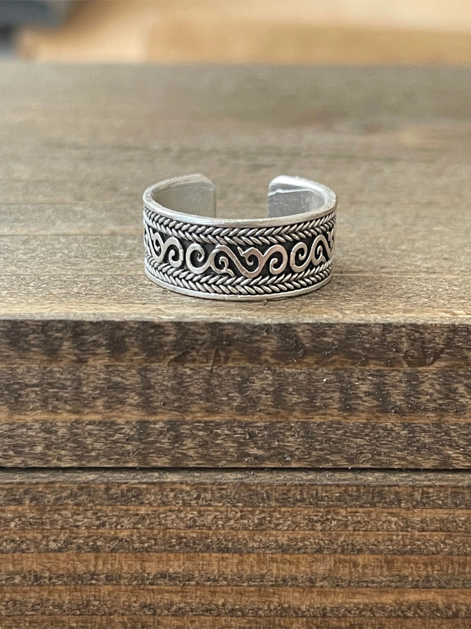 Ayarlanabilir Ölçü 925 Ayar Gümüş Kaplama Klasik Desen İşçilikli Tasarım Yüzük Standart