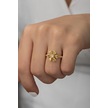 Pirinç Gold Renk Zirkon Taş Detaylı Beyaz Mineli Kelebek Model İnci Detay Ayarlanabilir Yüzük - Tj-byk3523 Çok Renkli