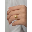 Ayarlanabilir Sarı Zirkon Taşlı Kamelya Çiçeği Yüzük Altın