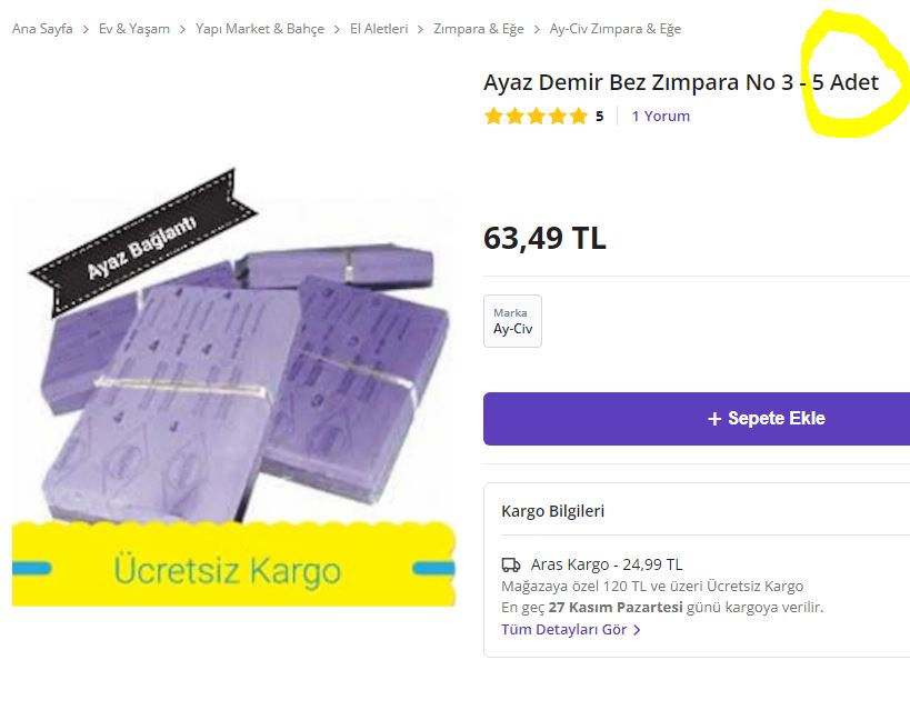Ürün açıklamasında ve görselde 5 adet olmasına rağmen bana 1 adet gönderildi bu ne demek oluyor şimdi? Sonuna kadar şikayetçiyim. Sürekli bu firmadan malzeme alıyordum hiç ama hiç yakışmadı bir daha asla bir şey almam. Sipariş Tarihi : 20/11/2023 Sipariş Kodu : 201883463111
