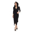 Ayhan Kadın Büyük Beden Kruvaze Yaka Belden Bağlama Detaylı Krep Elbise 1246 Siyah Siyah