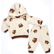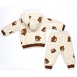 Ayıcık Desenli Kapüşonlu Bebek Alt Üst Takım Bej - Kahverengi