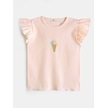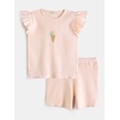 Aysbebe Kız Çocuk Dondurma Nakışlı Şortlu Kaşkorse Takım Kısa Kollu Somon MTC1002S