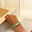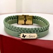 Ayşe İsmine Özel Kelebek Figürlü 14 Ayar Altın Plakalı Doğal Yeşil Derili Hediye Bileklik-660isim Ayşe