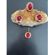 Aysesa Altın Görünümlü Yakut Zirkon Kadın Gümüş Set 2küpe+kolye+yüzük