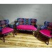 Azra Mobilya - Roma Çay Seti Koltuk Takımı - Babyface Kumaş - Ahşap Demonte Ayak Etnik Desen Fuşya