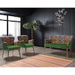 Azra Mobilya - Roma Çay Seti Koltuk Takımı - Etnik Desen Kumaş - Ahşap Demonte Ayak Etnik Desen - Yeşil