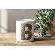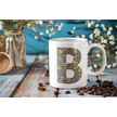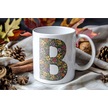 B Baş Harf Çiçek Desenleri İle Natural Tarz Kupa Bardak - Kişiye Özel Çiçekli Kahve Çay Bardak - Beyaz