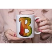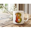 B Harf Yaprak Renkleri İle Kupa Bardak - Kişiye Özel Alfabe Harfli Bardak - Hediye Beyaz