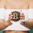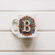 B Harfi Boho Bardak, Renkli Özel Tasarım Hediyelik Harfli Kupa, 330ml Porselen Beyaz