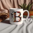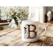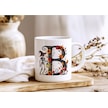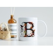 B Harfi Şapkalı İskelet Figürlü Ve Çiçekli Kupa Bardak - Cadılar Bayramı / Halloween Özel Hediye Beyaz