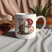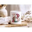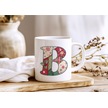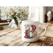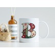 B Harfi Yılbaşı Temalı Kupa Bardak - Yeni Yıl Konsept Yamalı Efekt Tasarım - Noel Hediye Beyaz