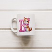 B Harfli Bardak, Sevimli Kedili Pembe Tasarım Bardak, Arkadaşa Aileye Hediye Porselen Beyaz