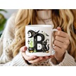 B Harfli Halloween Kedili Figür Kupa Bardak - Şapkalı Ve Kazanlı İsme Özel Kupa - Hediye Beyaz