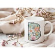 B Harfli Pastel Çiçek Desenli Kahve Kupası - Kişiye Özel Çiçekler Koleksiyonu Bardak - Hediye Beyaz