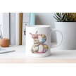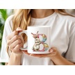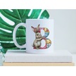 B Harfli Tavşan Kupa - Patchwork / Yamalı Desenli İsme Özel Kupa - Pastel Vintage Tarz Hediyelik Beyaz