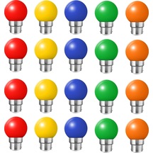 B22 Süngü Soketli 20 Adet Renkli Led Ampul, Mini Küre Tarzı, Verandalarda, Bahçelerde, Partilerde Ve Noel'de Golf Toplarını Süslemek İçin İdealdir.