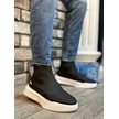 Ba0150 Bağcıksız Erkek Yüksek Taban Cilt Siyah Beyaz Spor Bot 001
