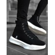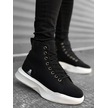 BA0155 Bağcıklı Erkek Yüksek Taban Siyah Beyaz Taban Spor Bot