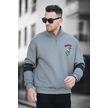 Babar Üç İplik Şardonlu Nakışlı Fermuarlı Dik Yaka Oversize Erkek Sweatshirt 001