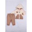 Babydonat Persona Bear Nakışlı Pamuk 3'li Erkek Bebek Takım Krem